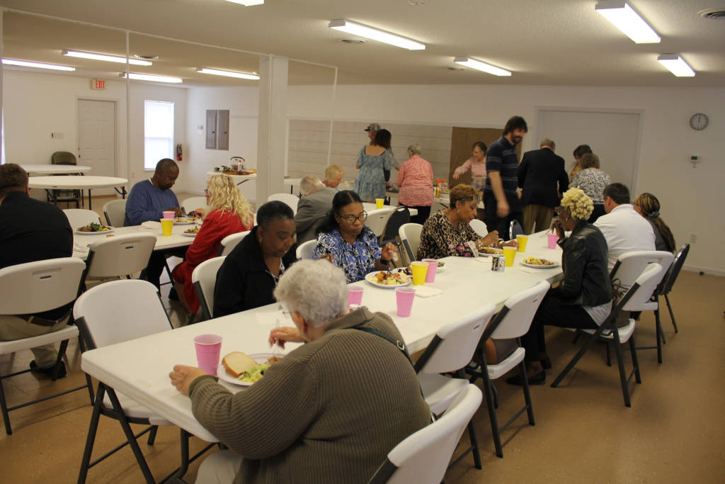 We have lunch (potluck) that is followed by a Devotional and are dismissed by about 2:00 PM.
